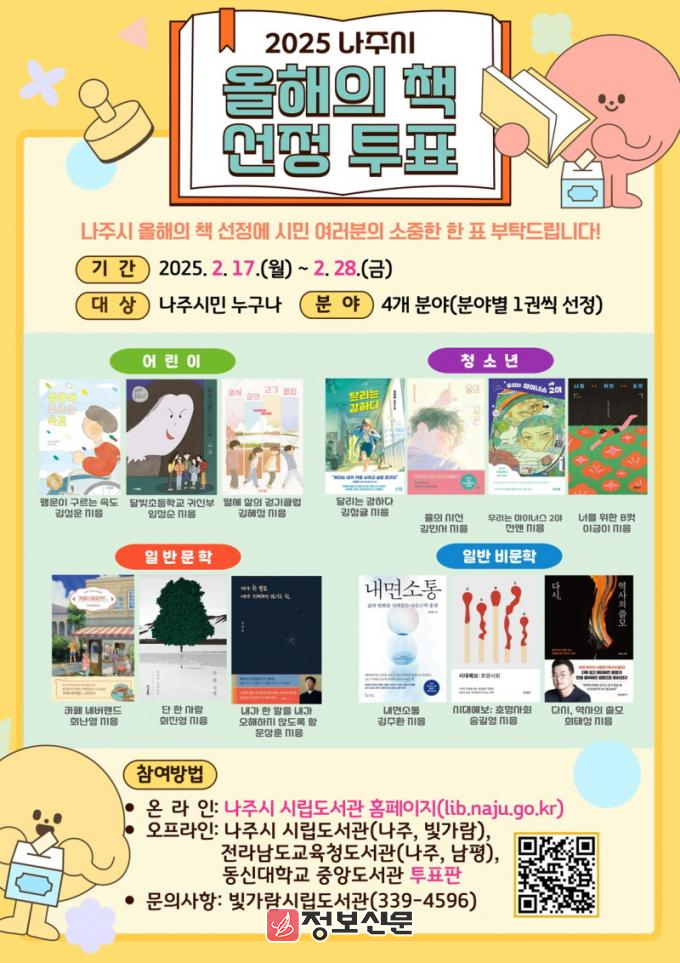 ![]() 2025 나주시 올해의 책 시민 선호도 조사 홍보 포스터. (사진제공-나주시) |