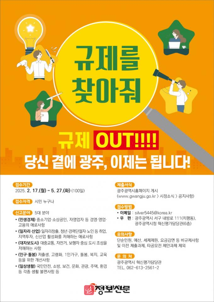 ![]() 광주광역시, 2025년 규제 집중 발굴 사업 추진 |