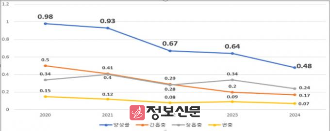 ![]() 한국건강관리협회, 기생충 조사연구사업 2024년도 기생충 양성률 0.48% |
