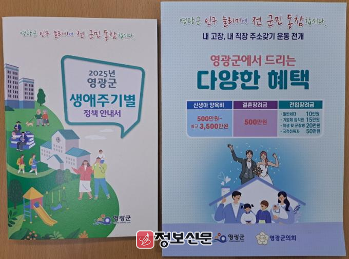 영광군 관계자는 “각종 인구정책 지원사업에 대한 정보를 군민들이 쉽게 찾을 수 있도록 안내서를 제작했다”라며 “앞으로도 군민들이 누릴 수 있는 다양한 혜택을 지속적으로 발굴하여 안내할 계획”이라고 전했다.