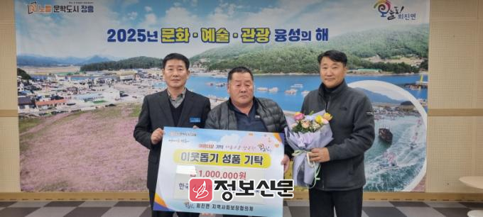 장찬석 공동위원장은 “따뜻한 마음을 전달해 주신 기부자 여러분들께 깊은 감사의 말씀을 드린다”며 “민관이 협력하여 더욱 촘촘하게 지원하여 더불어 잘 사는 회진면을 만들겠다”고 말했다