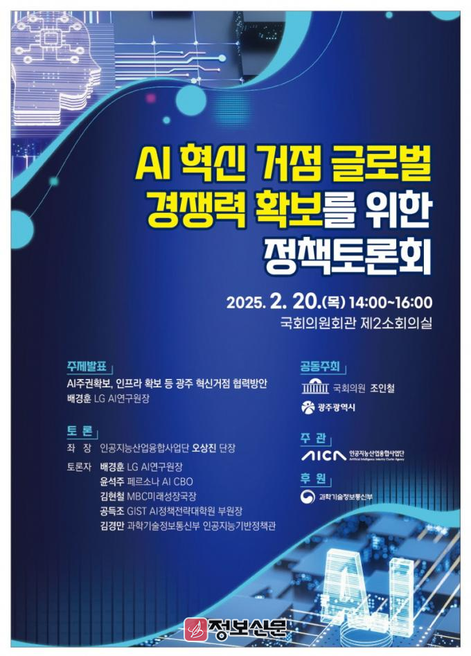 이번 정책토론회는 광주시와 조인철 국회의원실이 공동 주최하고, AI산업융합사업단이 주관한다.
