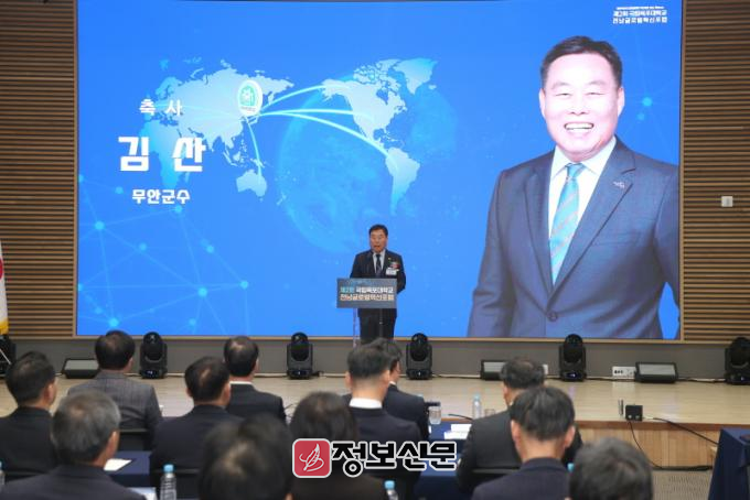 김산 무안군수는 포럼에 참석하여 ‘목포대 글로컬대학 30’ 사업 선정에 대한 축하를 전하고 무안군과 목포대의 협력 계획을 설명하며 지역발전을 위한 대학과의 상생 방안을 모색했다.