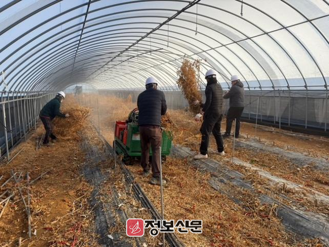 이 사업은 논·밭두렁에서 고춧대·깻대·잔가지 등 영농부산물을 태우는 대신, 신청한 농가에 나가 파쇄기를 사용해 무료로 분쇄해 주는 사업이다. 자연순환 문화를 정착하고 봄철 산불을 예방하는 효과도 있다. 미세먼지 발생도 낮춘다.