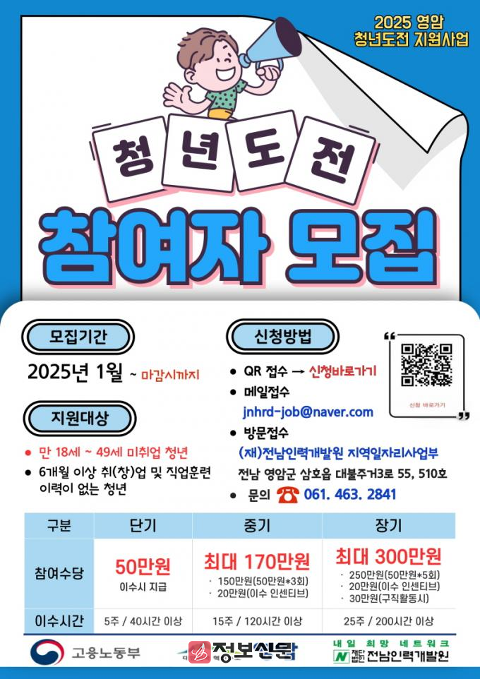 ![]() 영암군, 2025년 청년도전 지원사업 참여자 선착순 모집 |
