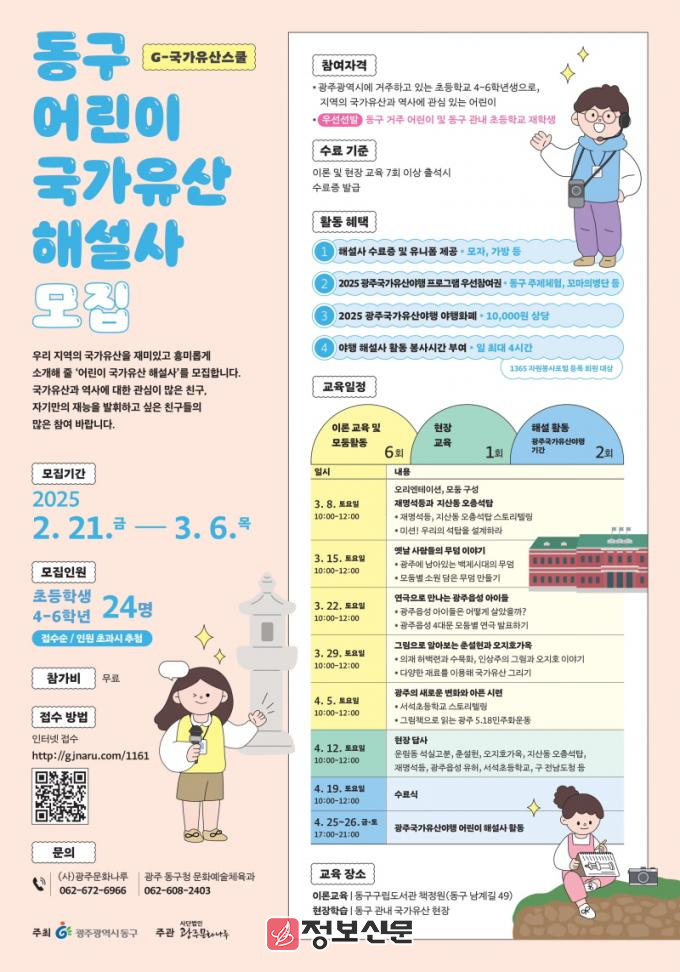 ![]() 광주시 동구, 어린이 국가 유산 해설사 양성교육 참여자 모집 |