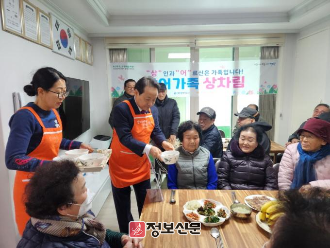 학동 마을사랑채 운영협의체 위원들은 이른 아침부터 준비한 떡국을 어르신 40여 명에게 점심으로 대접하며, 따뜻한 정을 나누는 시간을 가졌다. 또한 밑반찬 등을 어르신들께 전하며 을사년 한 해 건강과 안녕을 함께 기원했다.