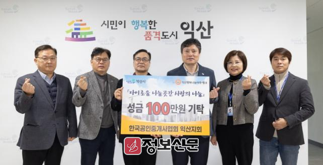 한편, 한국공인중개사협회 익산시지회는 지역 내 400여 명의 개업공인중개사가 소속된 단체로, 지역 부동산 거래 활성화와 회원들의 권익 증진 등을 위해 활동하고 있다. 또한 매년 성금 지원 등으로 지역에 나눔 활동에 앞장서고 있다.