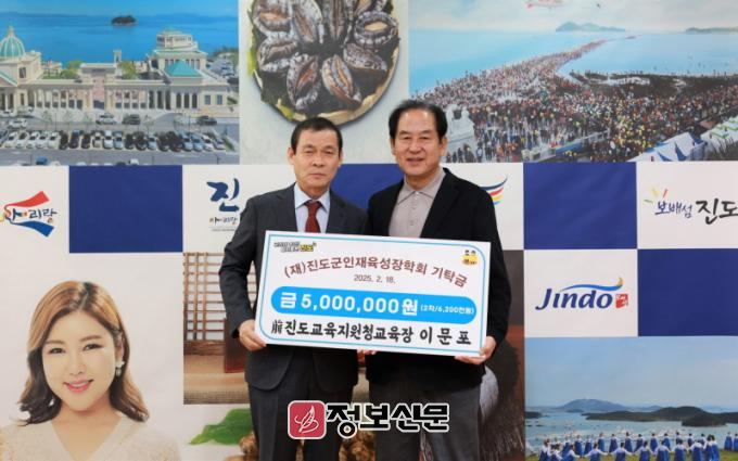 제33대 진도교육지원청 교육장을 역임한 이문포 씨는 퇴임을 앞두고 공직을 마무리하며, 고향을 위해 할 수 있는 일에 대해 고민하던 끝에 진도의 인재육성을 위한 장학금 기탁에 동참했다.