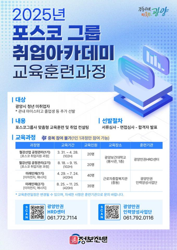 ![]() 광양시, 2025년 포스코그룹 취업아카데미 확대 운영 |