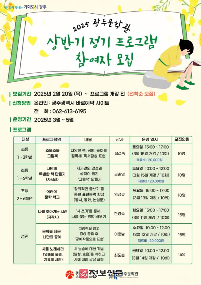 ![]() 광주문학관, 상반기 정기프로그램 운영 |