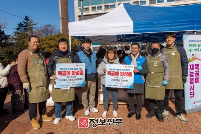 ![]() 지난 22일, 광양시 태인동 일대에서 진행된 광양제철소 연합봉사에서 고재윤 광양제철소장(왼쪽 두번째), 정인화 광양시장(왼쪽 네번째), 희망나무 목공예 재능봉사단이 지역 주민들에게 후원하기 위한 목공예 완성품 전달식을 열었다. |