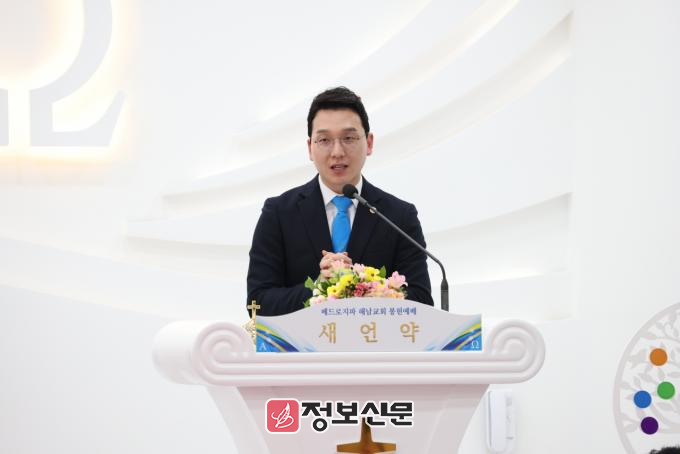 ![]() [사진 제공 = 신천지 광주교회]지난 23일 신천지 해남교회 봉헌예배에서 유재욱 베드로지파장이 사회를 보고 있다.