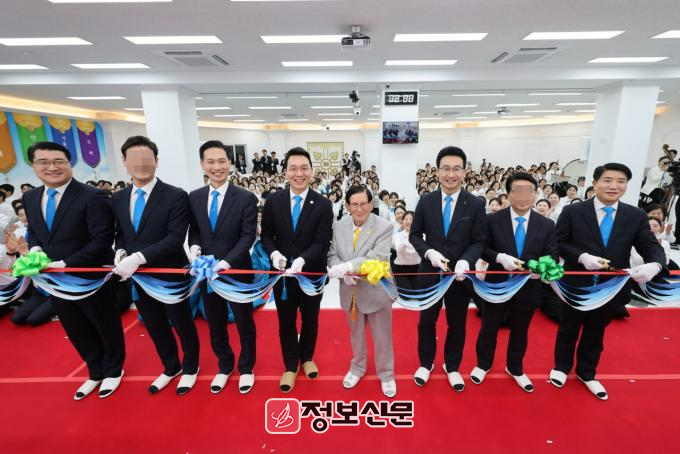 ![]() [사진 제공 = 신천지 광주교회]지난 23일 이만희 총회장과 유재욱 지파장, 지교회 담임강사들이 신천지 해남교회에서 봉헌예배 컷팅식을 진행하고 있다.