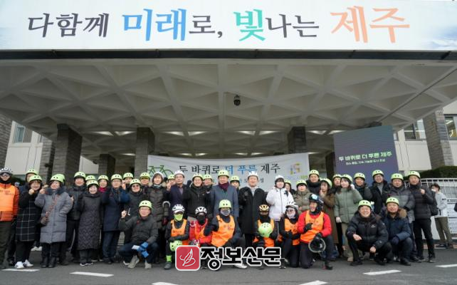 발대식에는 오영훈 도지사와 김광수 교육감을 비롯해 도청 및 교육청 직원, 자전거 동호인, 도민 등 200여 명이 함께했다.