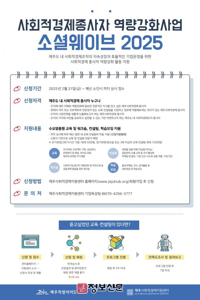 ![]() 제주자치도사회적경제지원센터, 소셜웨이브 2025 참여자 모집 |