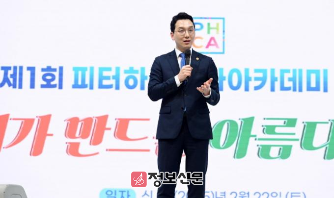![]() [사진 제공 = 신천지 광주교회]지난 22일 신천지 광주교회에서 열린 피터 하늘 문화 아카데미 1기 발표회에서 유재욱 지파장이 인사말을 전하고 있다.
