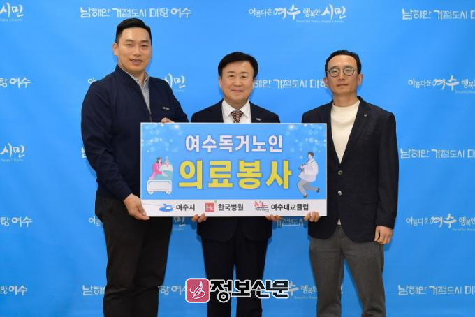 ![]() 여수시(시장 정기명)는 국제와이즈멘 여수대교클럽으로부터 독거노인 건강종합검진 의료서비스를 후원받았다. (왼쪽부터 문성환 국제와이즈멘 여수대교클럽 회장, 정기명 여수시장, 이해옹 여수한국병원 원장)