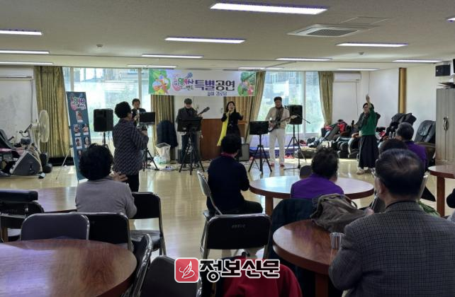 이날 봉사활동은 어르신들이 선호하는 다양한 노래로 맞춤형 공연을 선보인 후 어르신들과 함께 노래를 부르는 시간도 가졌으며 어르신들은 박수와 춤으로 큰 호응을 보였다
