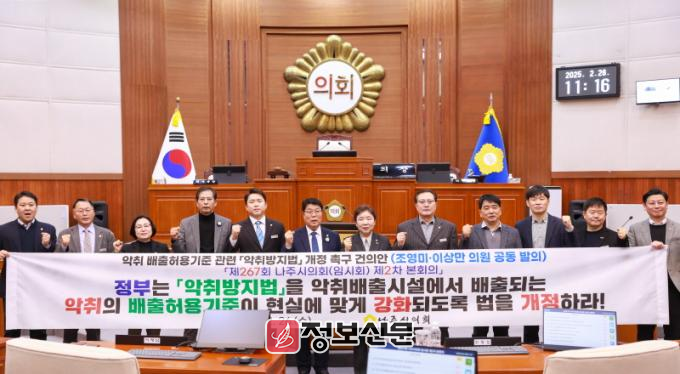 ![]() 나주시의회, 악취 배출허용기준 관련 악취방지법 개정 촉구 건의안 채택 |