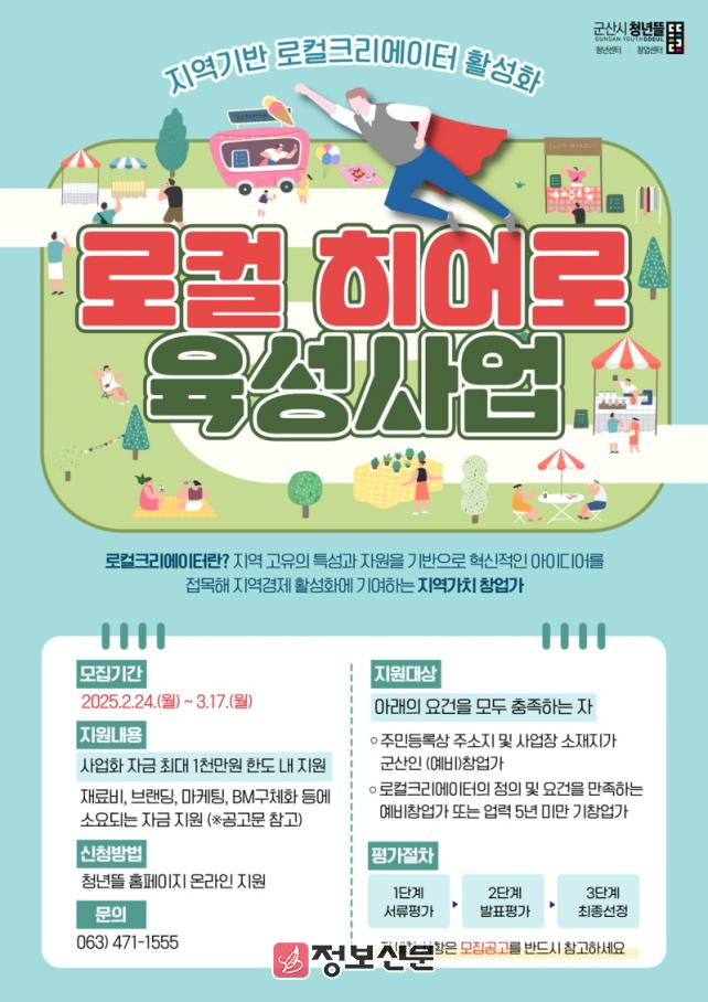 ![]() 군산시 청년뜰 창업센터, 2025로컬 히어로 육성사업 참여자 모집 |