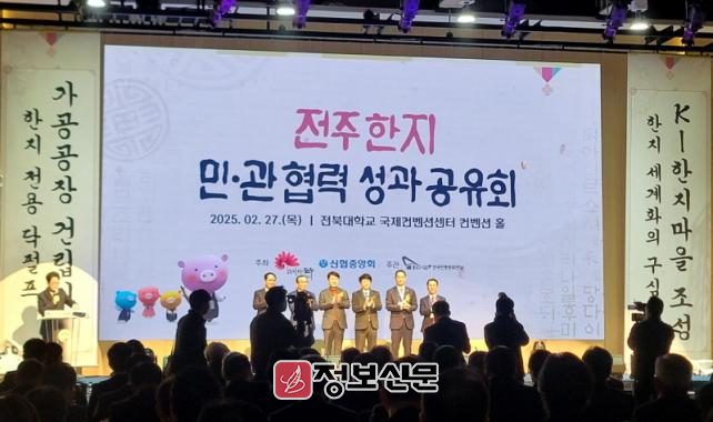 전주시와 신협중앙회는 27일 전북대학교 국제컨벤션센터에서 전주시 한지산업 관계자와 신협 임직원 등 220여 명이 참석한 가운데 ‘전주한지 민·관 협력 성과공유회’를 개최했다.