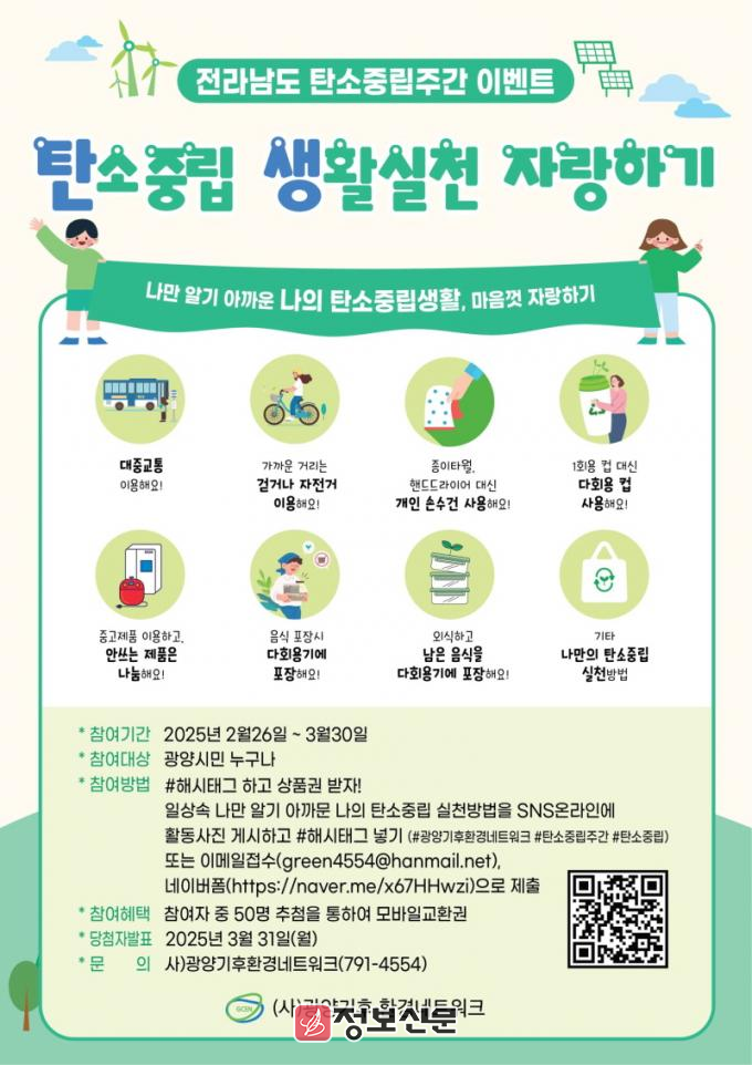 ![]() 광양시, 탄소중립 생활실천 참여 이벤트 진행 |