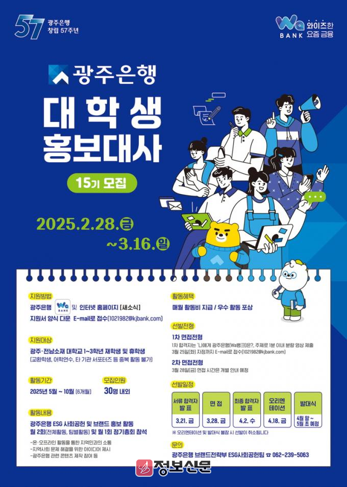 ![]() 광주은행, 지역을 잇고 꿈을 담다! 제15기 대학생 홍보대사 모집 |