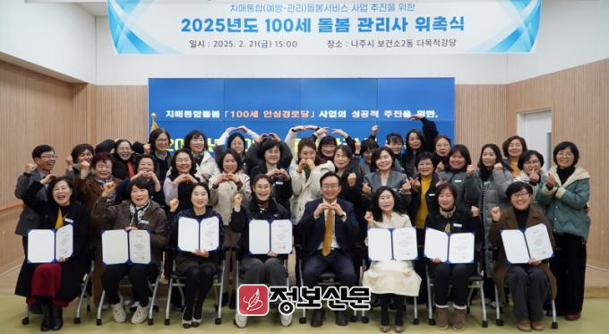 ![]() 나주시가 치매 예방과 관리를 위해 마을경로당, 환자 가정에 직접 찾아가 치매통합돌봄서비스를 제공하는 ‘100세 돌봄 관리사’ 40명을 위촉했다. (사진제공-나주시)
