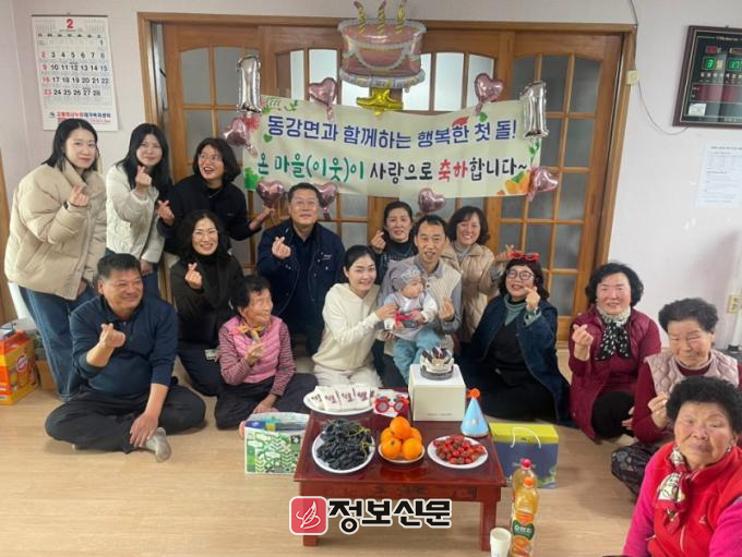 동강면은 올해부터 ‘온 마을(이웃)이 함께 축하해주는 첫 생일’ 특수시책을 추진하고 있다. 이는 마을 공동체가 아기의 탄생과 성장을 함께 축하하며, 출산을 장려하고 주민 간 화합을 도모하기 위한 취지로 마련됐다.