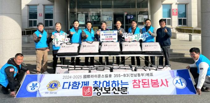 한편, 광양라이온스클럽(회장 박문식)은 ▲경로당 사랑의 봄이불 전달 ▲추석맞이 방역지원 ▲1004포기 김장김치 담그기 행사 후원 ▲주거환경개선사업 후원 ▲보일러 교체사업 등 온기 나눔 봉사를 현장에서 실천하고 있다.