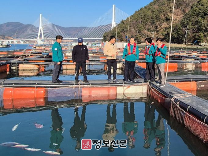 이날 정 시장은 남면 화태리 어류양식장을 방문해 현장을 살펴본 뒤 어업인과 어촌계장으로부터 애로사항을 청취했다.