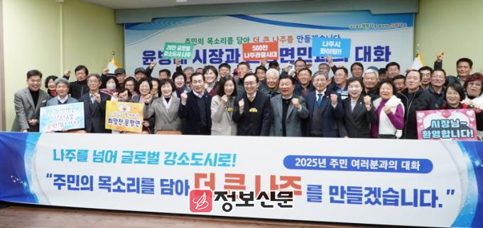 또한, 지속가능한 농생명 발전, 에너지신산업 기반 첨단과학도시 메카, 500만 나주 관광 시대, 미래 인재를 키우는 명품 교육도시, 모든 세대가 행복한 복지 등 2025년 시정 추진 전략, 세부 시책도 설명하며 미래비전에 대한 주민들의 공감대를 높였다.