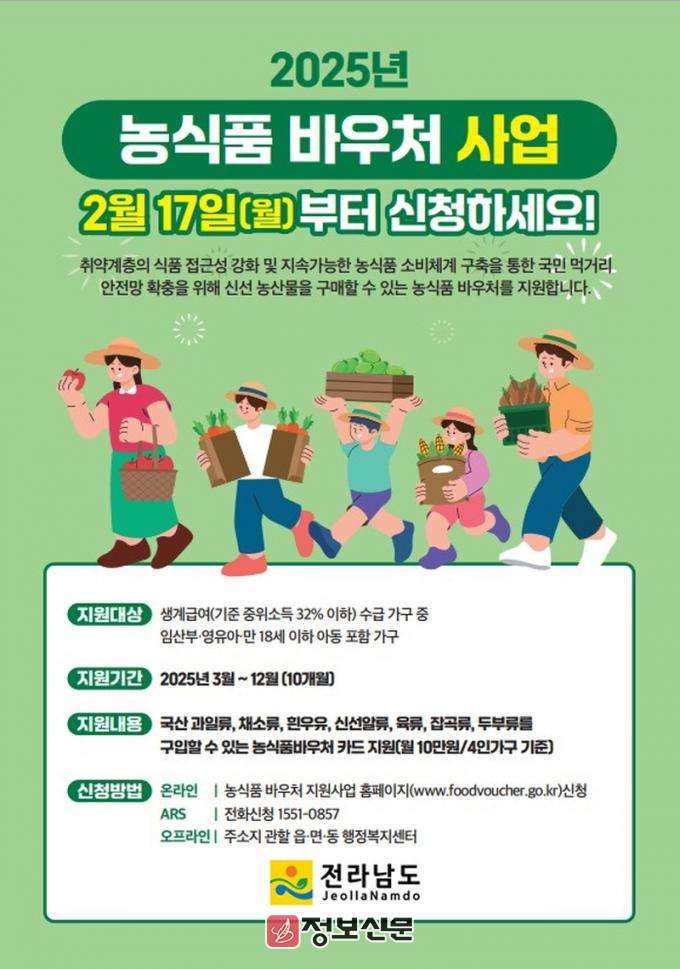 ![]() 전라남도, 취약계층 농식품 바우처 지원사업 추진 |