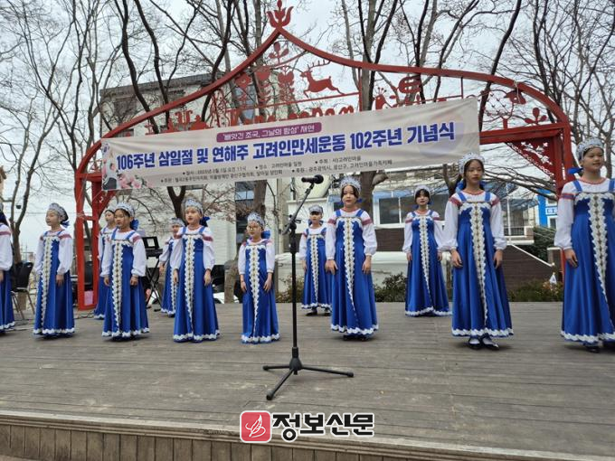 이어진 공연에서 ‘잊지 말자’, ‘내 조국’, ‘고향 산천’ 등의 곡이 울려 퍼지자 삼일절 만세운동을 기리기 위해 모인 참가자들의 마음을 뜨겁게 만들었으며, 고려인선조들의 조국을 향한 그리움과 자부심을 불러일으켰다.