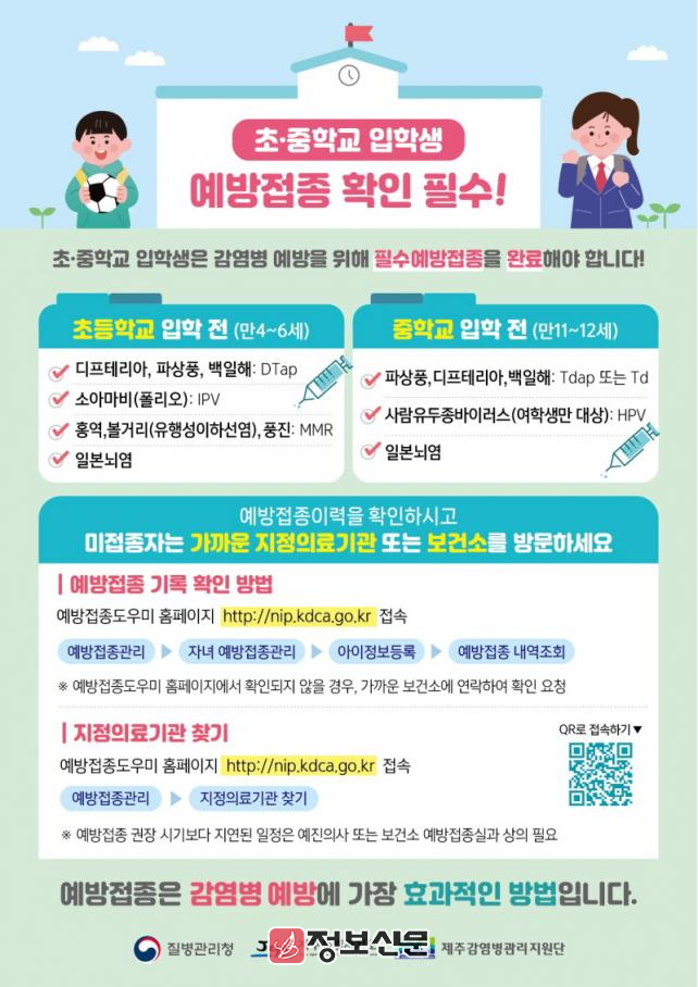 ![]() 제주보건소, 초‧중학교 입학생 예방접종 확인사업 실시 |