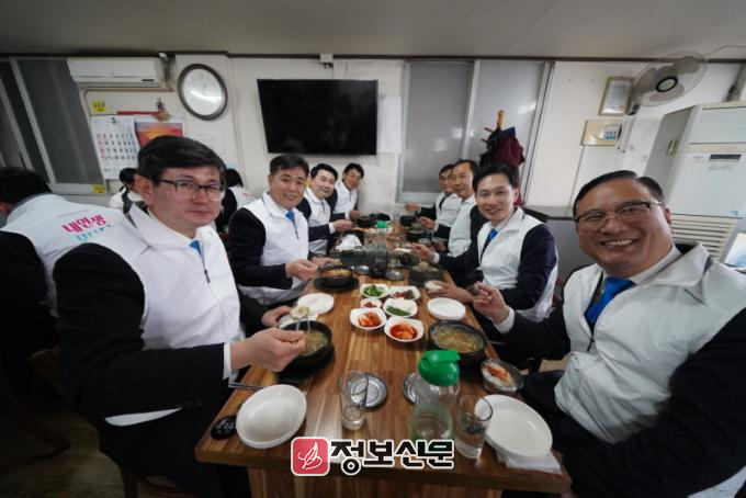 ![]() [사진 제공 = 신천지 여수교회] 지난 2일 신천지 여수교회 교인들이 ‘2025년 지역 상권 살리기’ 일원으로 화장동 주변 식당에서 함께 식사하는 모습. |