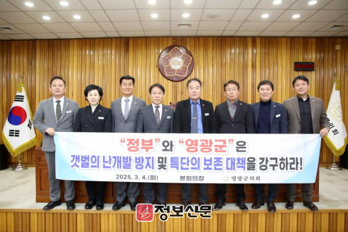 영광 갯벌 또한 다양한 해양 생물이 서식하는 생태계의 보고이자, 탄소를 저장하는 ‘블루 카본’으로 기후 변화 완화에 중요한 역할을 하고 있다. 그러나 최근 갯벌 위에 태양광·풍력 발전시설이 빠르게 늘어나면서 환경 훼손과 생태계 파괴의 위험이 커지고 있다. 이에 따라 군의회는 무분별한 개발을 막고, 지속 가능한 방식으로 갯벌을 보존할 것을 강력히 촉구했다.