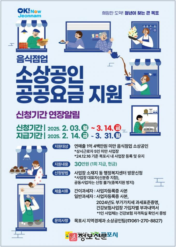![]() 목포시, 민생안정 위한 음식점 소상공인 공공요금 지원 접수연장 |