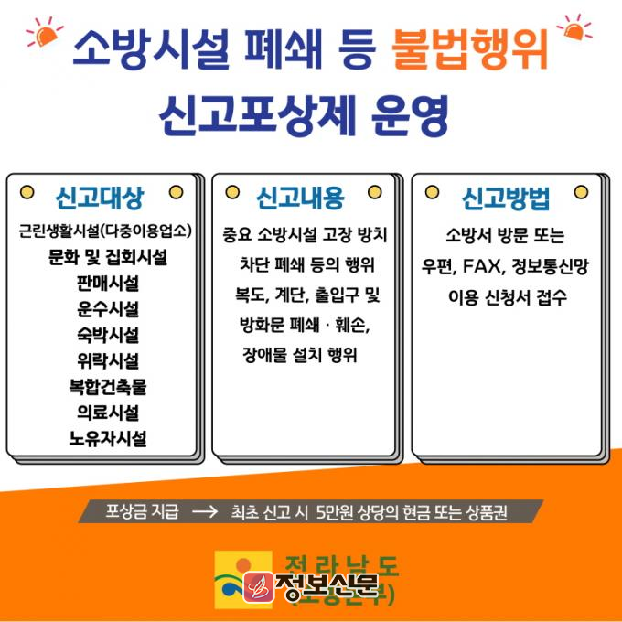 ![]() 장흥소방서, ‘소방시설 불법행위 신고포상제’ 연중 운영 |