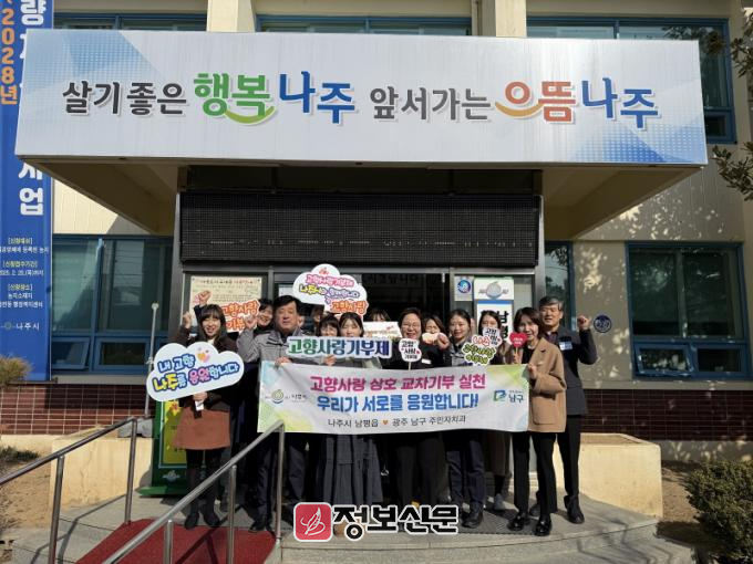 ![]() 나주시 남평읍은 최근 남평파출소, 광주 남구 주민자치과와 함께 고향사랑기부금을 교차 기부했다. (사진제공-나주시)