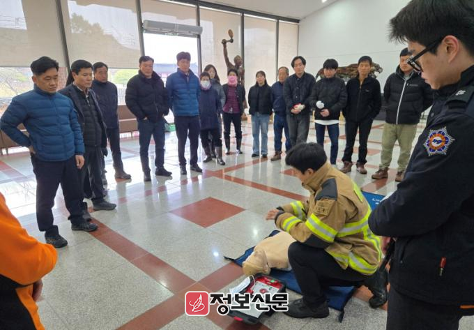 합동훈련 후 삼호119안전센터 주관으로 전시관 이용 도중 심정지 환자 발생 대비를 위한 심폐소생술 및 자동심장충격기(AED) 사용법 교육도 이어졌다.