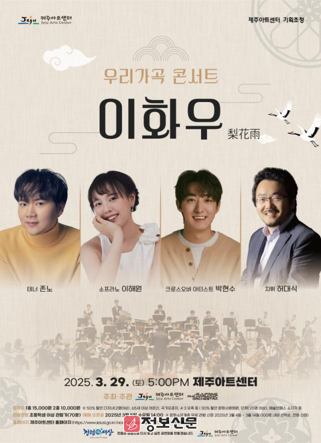 ![]() 제주아트센터, 우리가곡 콘서트‘이화우(梨花雨)’공연 개최 |
