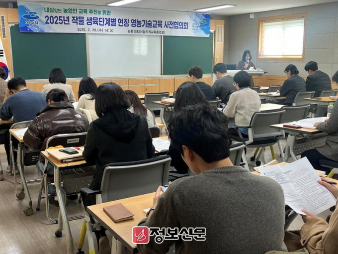 이번 회의는 마을별로 찾아가는 현장 영농기술교육 추진 전 농촌지도·연구사의 강의 역량을 강화하고 작목별 주요 변경 사항을 공유하기 위해 마련됐다. 올해 찾아가는 현장 영농기술교육은 작물의 생육 시기에 맞춰 마을별로 1~2회, 회당 2시간 내외로 진행된다.