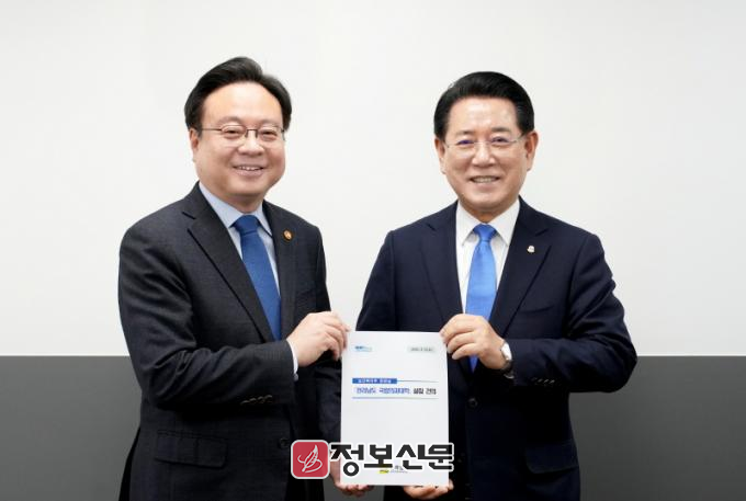 ![]() 김영록 전라남도지사가 5일 정부서울청사에서 조규홍 보건복지부 장관을 만나 전라남도 국립의과대학 설립 등 도 현안 해결을 위한 건의를 하고 있다. |
