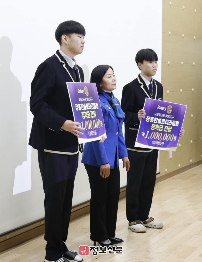 장흥한솔로타리클럽 이애자 회장은 “회원 모두의 노력이 들어간 공병 및 폐지 수거 등을 통한 자원 재활용으로 만들어진 뜻깊은 장학금이 지역 학생들에게 조금이나마 도움이 될 수 있기를 바라며, 앞으로도 장흥고등학교에 지속적인 관심을 가지고 장학사업이 꾸준히 이어갈 수 있도록 노력하겠다”고 소감을 전했다.