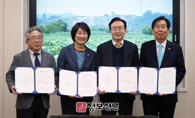 나주시(시장 윤병태)는 6일 동신대학교, 전남연구원, 영산포발전협의회와 ‘영산강 생명울 도시생태축 복원사업’ 추진을 위한 상생협력 업무협약을 체결했다고 밝혔다.