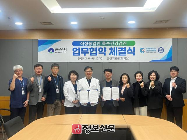 ![]() 군산시, 군산의료원과 2025년 여성농업인 특수건강검진 지원사업 업무협약 체결 |