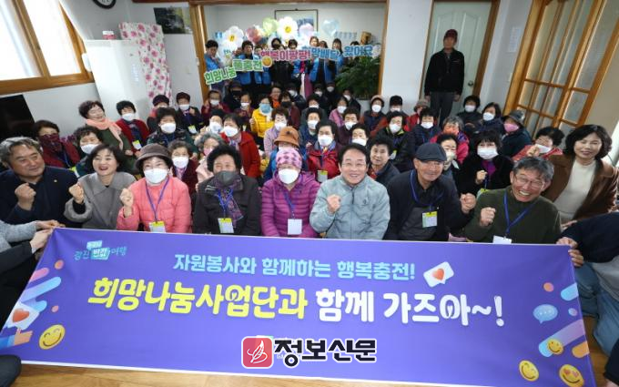 희망나눔사업은 2013년부터 14년간 이어온 역사 깊은 군민 중심의 봉사활동이자 서비스로 다양한 분야의 민·관 봉사자들이 마을로 찾아가 주민들에게 통합서비스를 제공하는 사업이다. 작년 10월 대망의 100회 행사를 맞이한 뒤 올해 첫 102회 행사를 성황리에 마무리했다.
