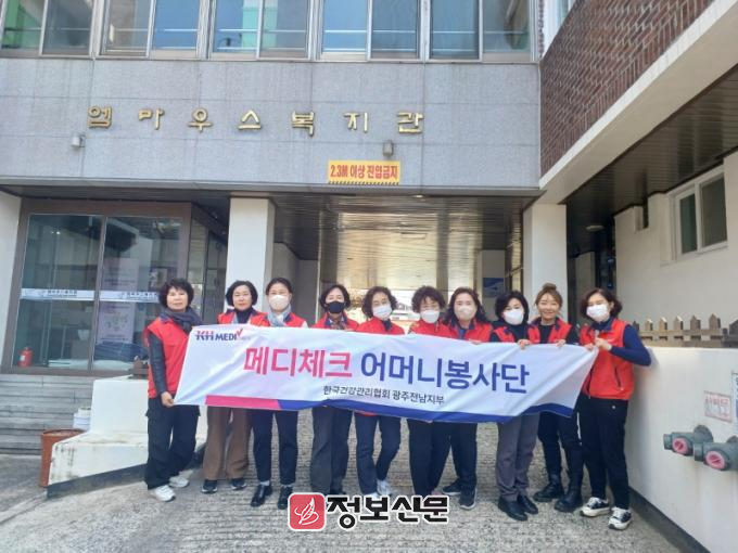 한국건강관리협회 광주전남지부는 지역 주민을 위한 사회공헌활동을 지속적으로 펼치고 있으며, 메디체크어머니봉사단과 함께 나눔 봉사를 실천하고 있다.